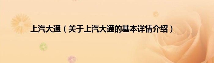1、上汽大通汽车有限公司(以下简称“上汽大通”),是上海汽车集团股份有限公司全资子公司。