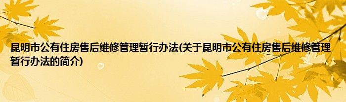 大家好,昆明市公有住房售后维修管理暂行办法,关于昆明市公有住房售后维修管理暂行办法的简介很多人还不知道,现在让我们一起来看看吧!