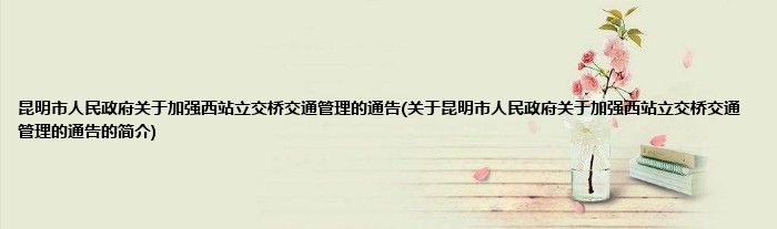 大家好,昆明市人民政府关于加强西站立交桥交通管理的通告,关于昆明市人民政府关于加强西站立交桥交通管理的通告的简介很多人还不知道,现在让我们一起来看看吧!