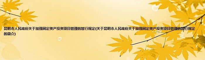 本文关于昆明市人民政府关于加强固定资产投资项目管理的暂行规定的简介就讲解完毕,希望对大家有所帮助。