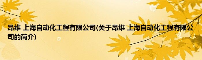 本文关于昂维 上海自动化工程有限公司的简介就讲解完毕,希望对大家有所帮助。