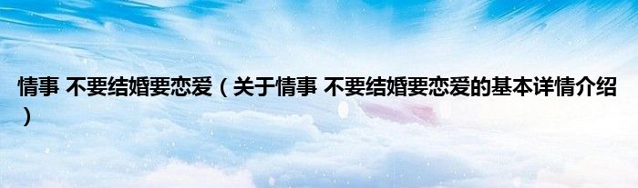 本文关于情事 不要结婚要恋爱的基本详情介绍就讲解完毕,希望对大家有所帮助。