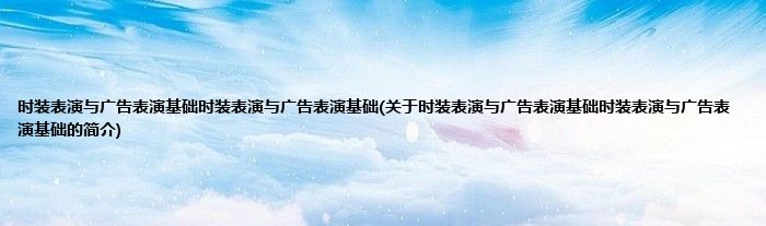 时装表演与广告表演基础时装表演与广告表演基础(关于时装表演与广告表演基础时装表演与广告表演基础的简介)
