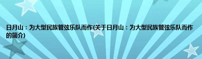 本文关于日月山:为大型民族管弦乐队而作的简介就讲解完毕,希望对大家有所帮助。