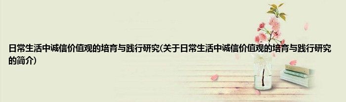本文关于日常生活中诚信价值观的培育与践行研究的简介就讲解完毕,希望对大家有所帮助。