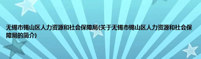 大家好,无锡市锡山区人力资源和社会保障局,关于无锡市锡山区人力资源和社会保障局的简介很多人还不知道,现在让我们一起来看看吧!