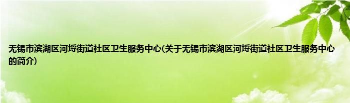 本文关于无锡市滨湖区河埒街道社区卫生服务中心的简介就讲解完毕,希望对大家有所帮助。
