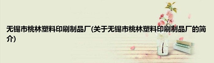 本文关于无锡市桃林塑料印刷制品厂的简介就讲解完毕,希望对大家有所帮助。