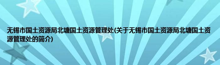 大家好,无锡市国土资源局北塘国土资源管理处,关于无锡市国土资源局北塘国土资源管理处的简介很多人还不知道,现在让我们一起来看看吧!