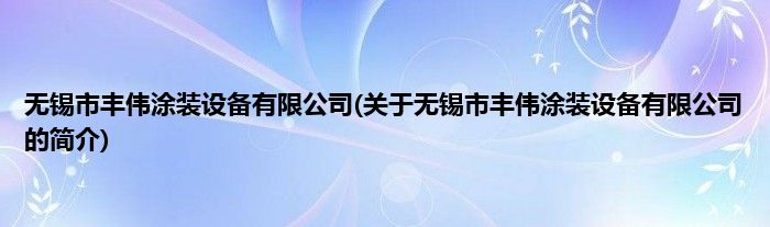 本文关于无锡市丰伟涂装设备有限公司的简介就讲解完毕,希望对大家有所帮助。