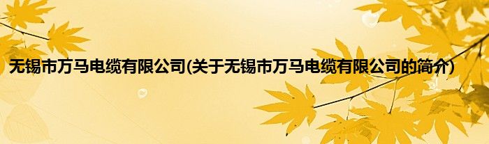 本文关于无锡市万马电缆有限公司的简介就讲解完毕,希望对大家有所帮助。