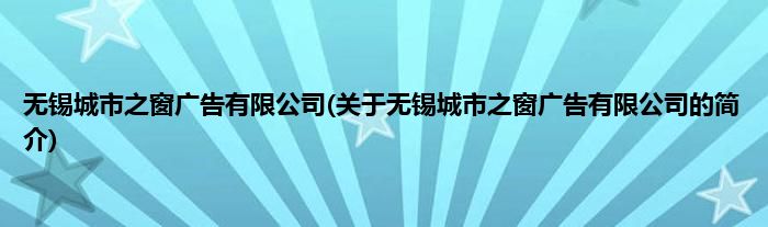 本文关于无锡城市之窗广告有限公司的简介就讲解完毕,希望对大家有所帮助。