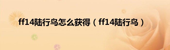 大家好,精选小编来为大家解答以上问题。ff14陆行鸟怎么获得,ff14陆行鸟很多人还不知道,现在让我们一起来看看吧!