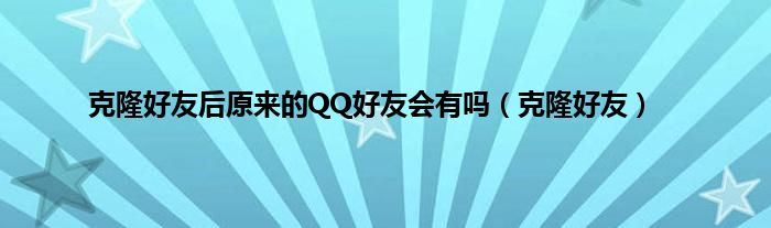 大家好,精选小编来为大家解答以上问题。克隆好友后原来的QQ好友会有吗,克隆好友很多人还不知道,现在让我们一起来看看吧!