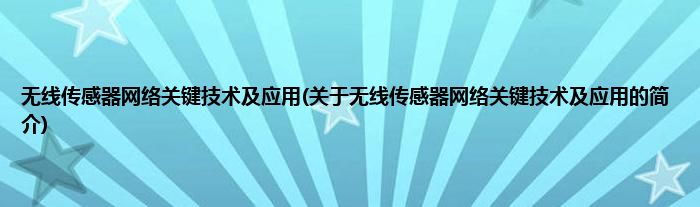 本文关于无线传感器网络关键技术及应用的简介就讲解完毕,希望对大家有所帮助。