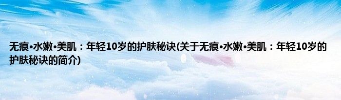 大家好,无痕·水嫩·美肌:年轻10岁的护肤秘诀,关于无痕·水嫩·美肌:年轻10岁的护肤秘诀的简介很多人还不知道,现在让我们一起来看看吧!