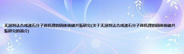 本文关于无溶剂法合成沸石分子筛机理的固体核磁共振研究的简介就讲解完毕,希望对大家有所帮助。