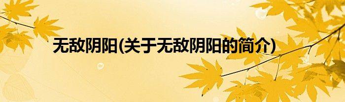 大家好,无敌阴阳,关于无敌阴阳的简介很多人还不知道,现在让我们一起来看看吧!