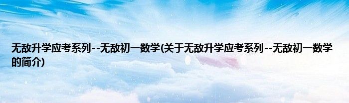 大家好,无敌升学应考系列--无敌初一数学,关于无敌升学应考系列--无敌初一数学的简介很多人还不知道,现在让我们一起来看看吧!