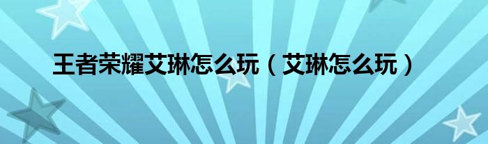 大家好,精选小编来为大家解答以上问题。王者荣耀艾琳怎么玩,艾琳怎么玩很多人还不知道,现在让我们一起来看看吧!