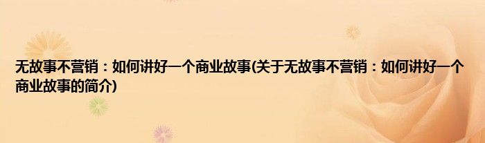 本文关于无故事不营销:如何讲好一个商业故事的简介就讲解完毕,希望对大家有所帮助。