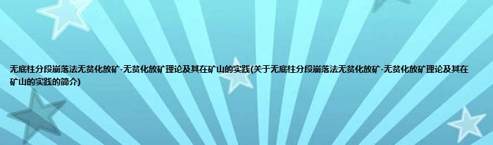 本文关于无底柱分段崩落法无贫化放矿-无贫化放矿理论及其在矿山的实践的简介就讲解完毕,希望对大家有所帮助。