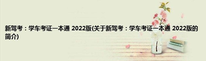 本文关于新驾考:学车考证一本通 2022版的简介就讲解完毕,希望对大家有所帮助。
