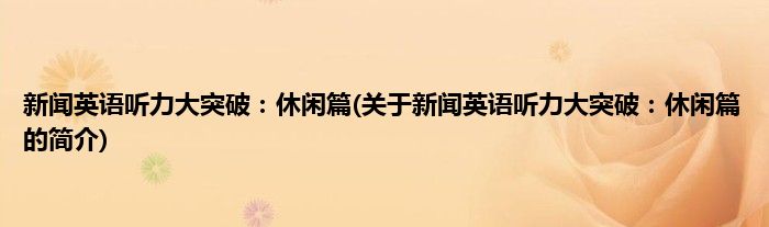 本文关于新闻英语听力大突破:休闲篇的简介就讲解完毕,希望对大家有所帮助。