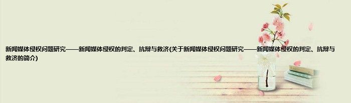 本文关于新闻媒体侵权问题研究——新闻媒体侵权的判定、抗辩与救济的简介就讲解完毕,希望对大家有所帮助。