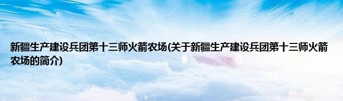 大家好,新疆生产建设兵团第十三师火箭农场,关于新疆生产建设兵团第十三师火箭农场的简介很多人还不知道,现在让我们一起来看看吧!