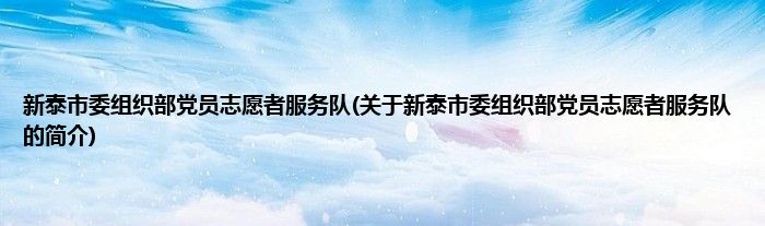 1、 新泰市委组织部党员志愿者服务队是由新泰市党员志愿服务总队领导下的志愿团体。
