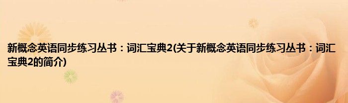 本文关于新概念英语同步练习丛书:词汇宝典2的简介就讲解完毕,希望对大家有所帮助。