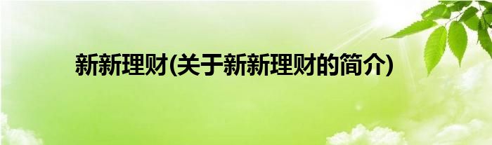 大家好,新新理财,关于新新理财的简介很多人还不知道,现在让我们一起来看看吧!