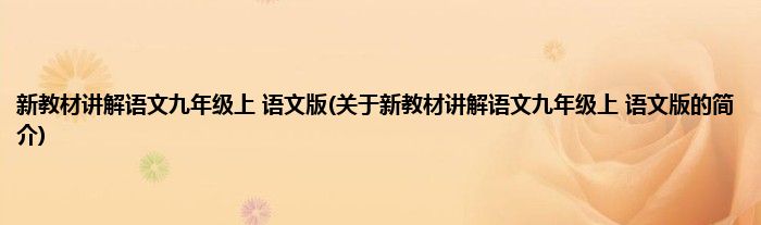 大家好,新教材讲解语文九年级上 语文版,关于新教材讲解语文九年级上 语文版的简介很多人还不知道,现在让我们一起来看看吧!