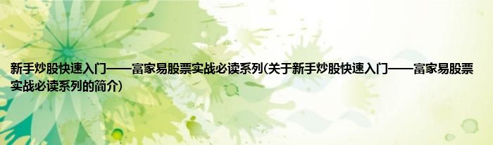 大家好,新手炒股快速入门——富家易股票实战必读系列,关于新手炒股快速入门——富家易股票实战必读系列的简介很多人还不知道,现在让我们一起来看看吧!