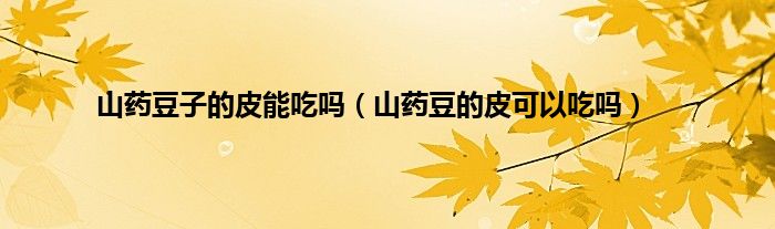 一、 山药豆的皮可以吃吗