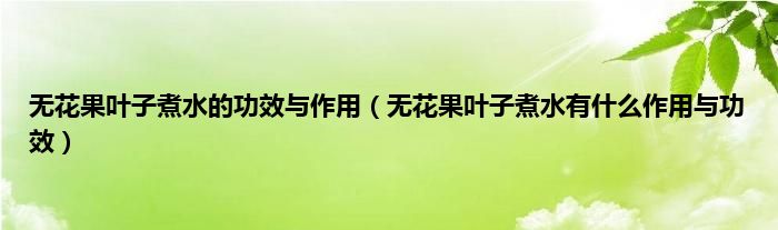 一、 无花果叶子煮水的功效