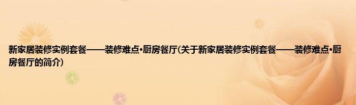 大家好,新家居装修实例套餐——装修难点·厨房餐厅,关于新家居装修实例套餐——装修难点·厨房餐厅的简介很多人还不知道,现在让我们一起来看看吧!