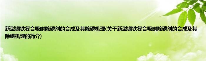 本文关于新型镧铁复合吸附除磷剂的合成及其除磷机理的简介就讲解完毕,希望对大家有所帮助。