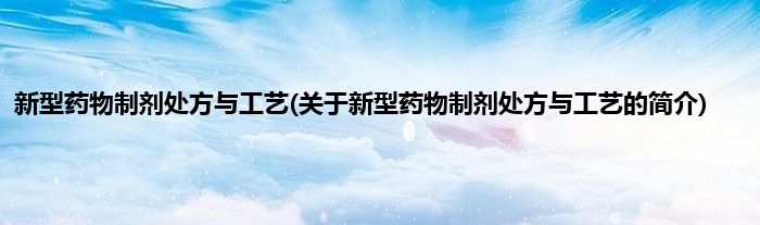 本文关于新型药物制剂处方与工艺的简介就讲解完毕,希望对大家有所帮助。