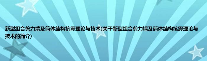 大家好,新型组合剪力墙及筒体结构抗震理论与技术,关于新型组合剪力墙及筒体结构抗震理论与技术的简介很多人还不知道,现在让我们一起来看看吧!
