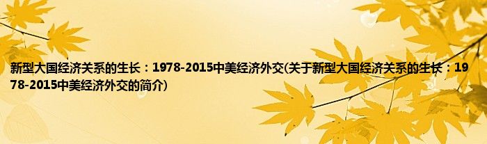 本文关于新型大国经济关系的生长:1978-2015中美经济外交的简介就讲解完毕,希望对大家有所帮助。