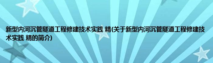 1、 《新型内河沉管隧道工程修建技术实践(精)》是2017年人民交通出版社股份有限公司出版的图书。