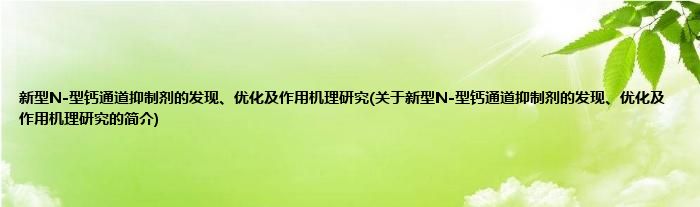 本文关于新型N-型钙通道抑制剂的发现、优化及作用机理研究的简介就讲解完毕,希望对大家有所帮助。