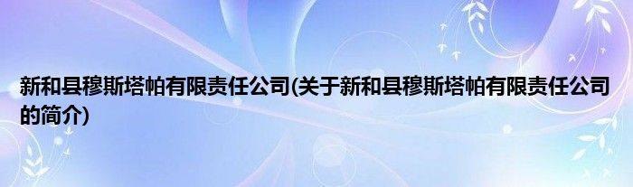 本文关于新和县穆斯塔帕有限责任公司的简介就讲解完毕,希望对大家有所帮助。