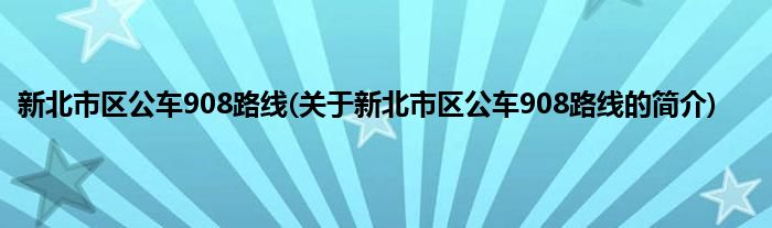 本文关于新北市区公车908路线的简介就讲解完毕,希望对大家有所帮助。