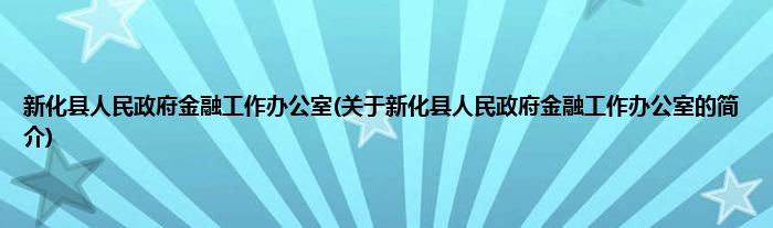 新化县人民政府金融工作办公室(关于新化县人民政府金融工作办公室的简介)