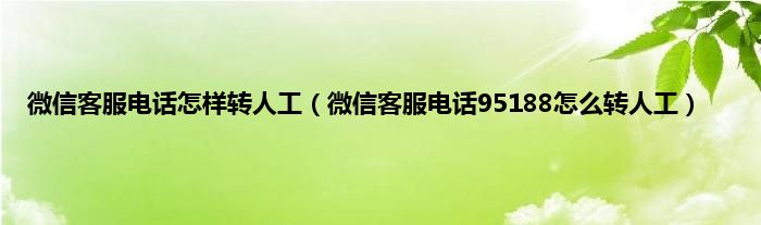 微信客服电话怎样转人工(微信客服电话95188怎么转人工)