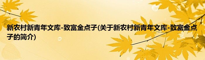 本文关于新农村新青年文库-致富金点子的简介就讲解完毕,希望对大家有所帮助。
