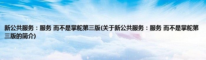 本文关于新公共服务:服务,而不是掌舵第三版的简介就讲解完毕,希望对大家有所帮助。